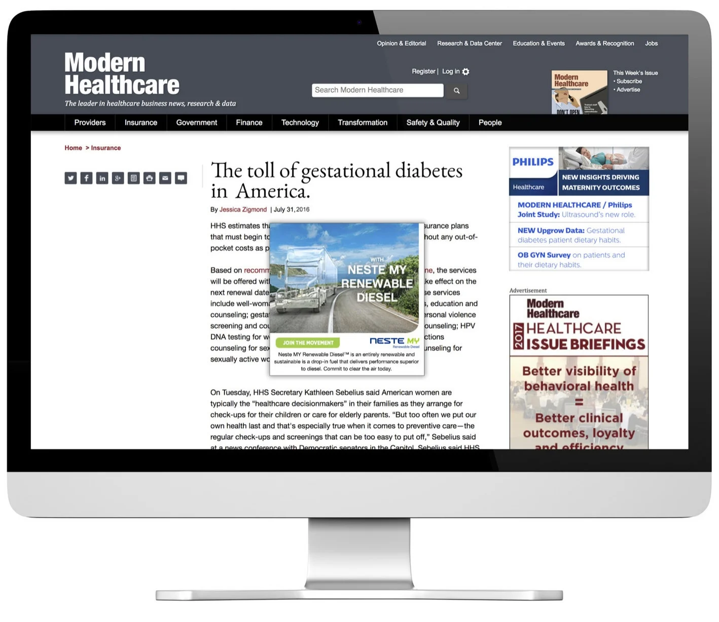 California fleet managers were sent a unique piece that, once opened, allowed them to watch two insightful videos about Neste MY Renewable Diesel. Also included in this mailer was a pre-postage envelope addressed to the vendor, so instead of throwing it in the garbage, fleet managers could send the mailer back to the vendor to be reused and recycled.
